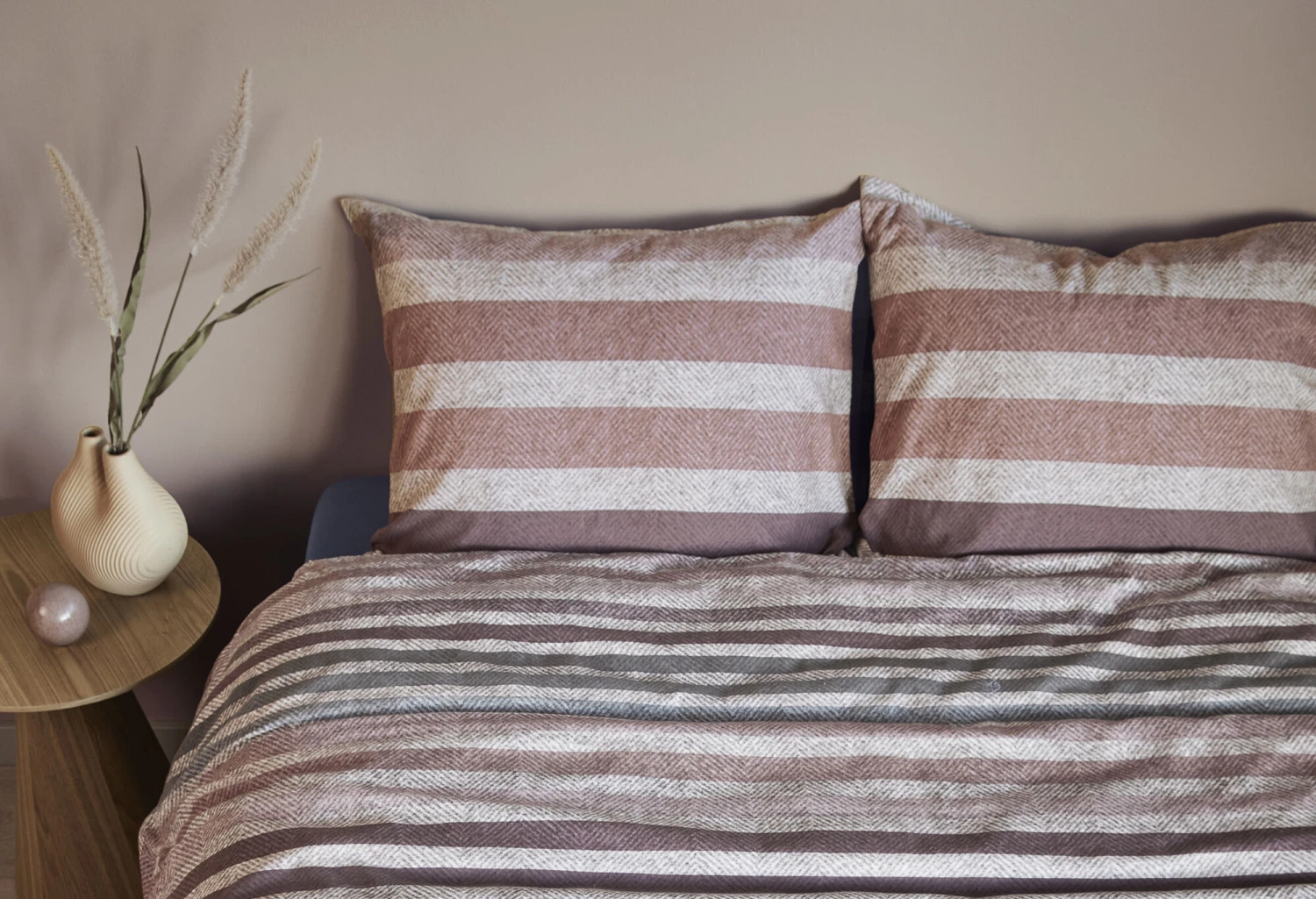 Die Bettwäsche aus sehr weichem Flanell, 100 % Baumwolle gefertigt. 30 % bestehen aus recycelten Post-Verbraucher-Abfällen.Für die Herstellung dieses Bettwäschen werden Textilien gesammelt und sortiert. Durch ein mechanisches Recyclingverfahren (die Textilien werden zerkleinert und zu Fasern verarbeitet) werden neue Garne hergestellt. Um die Qualität hoch zu halten, wird die recycelte Baumwolle mit 70 % BCI-zertifizierter Baumwolle kombiniert. Für diesen Bettwäsche werden dicke Garne verwendet, die sanft gebürstet sind, so dass sich der Bezug sehr weich, dick und warm anfühlt. Ein Bettwäsche aus Flanell ist besonders für kalte Winternächte geeignet.