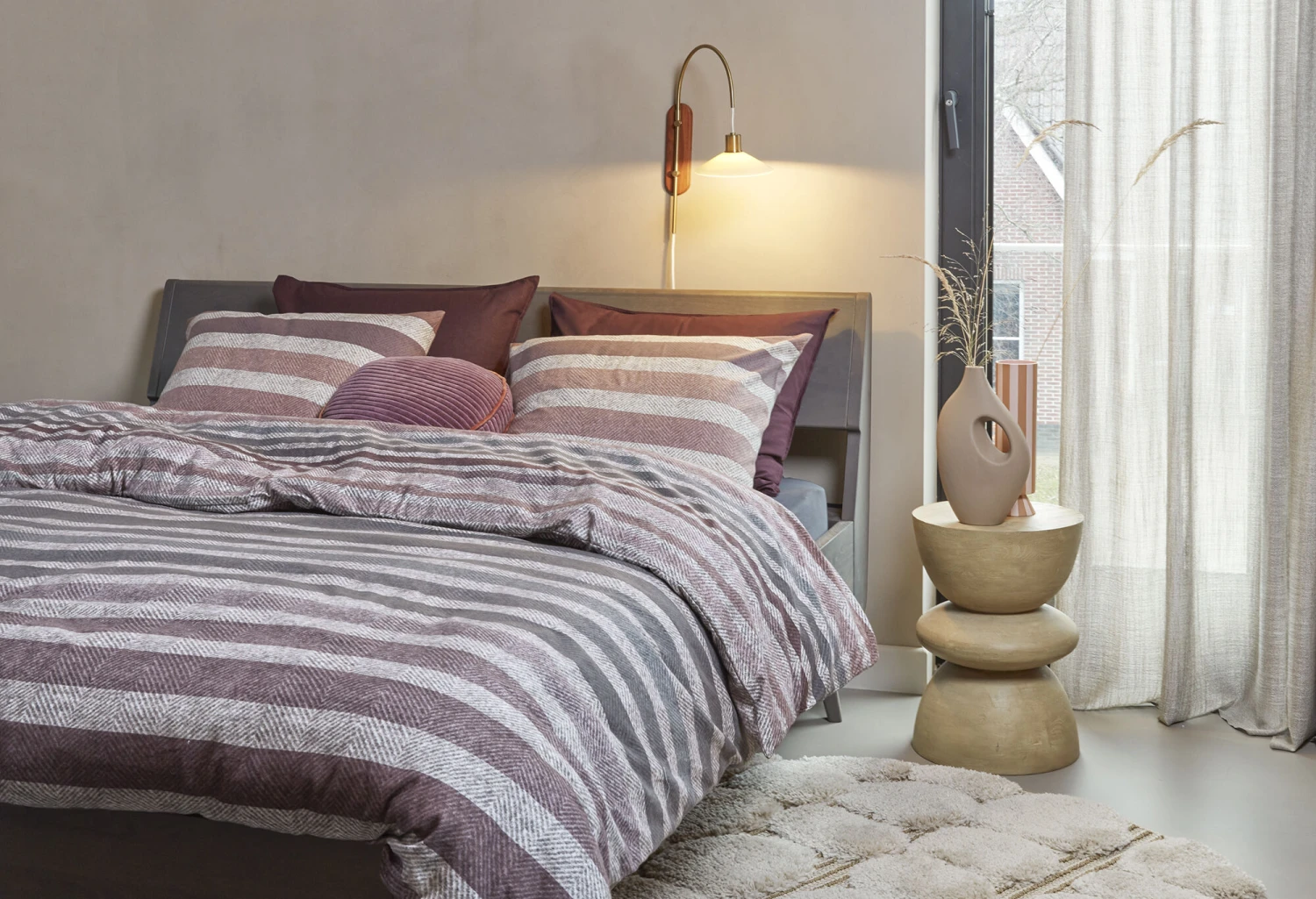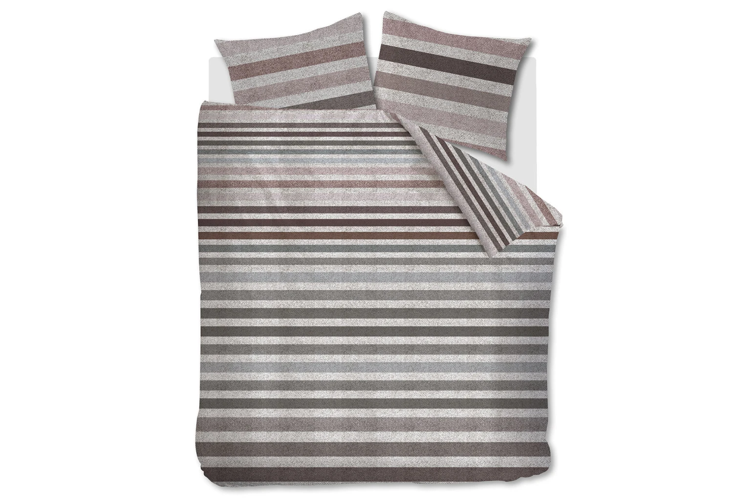 Die Bettwäsche Gloaming von Beddinghouse passt perfekt in ein Schlafzimmer im Landhausstil. Der Bettbezug besteht aus einem Druck von Streifen, die sich langsam mit einem subtilen Farbverlauf verbreitern. Die Streifen sind auf einer grauen Stofftextur abgebildet. Die Bettwäsche ist aus Flanell gefertigt, damit Sie in den kalten Wintermonaten gemütlich warm vor sich hin träumen können. Dieser Bettbezug ist in mehreren Farbvarianten erhältlich.
