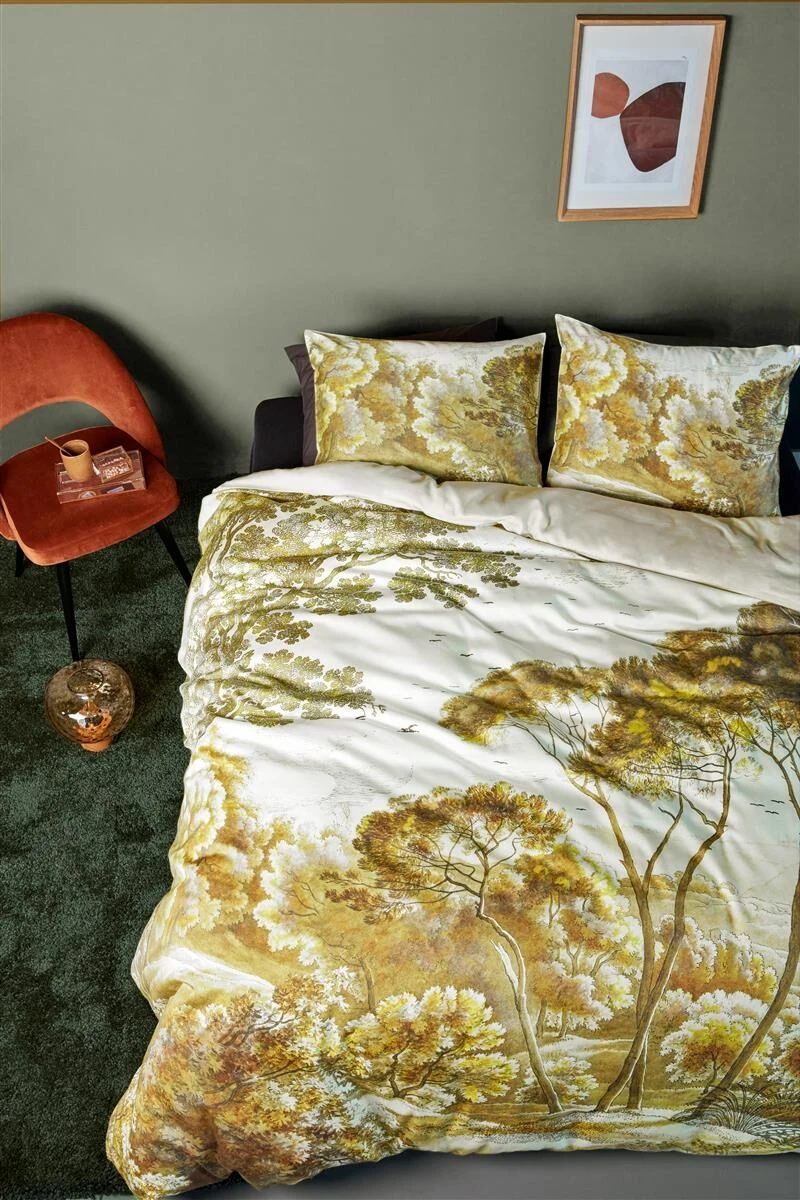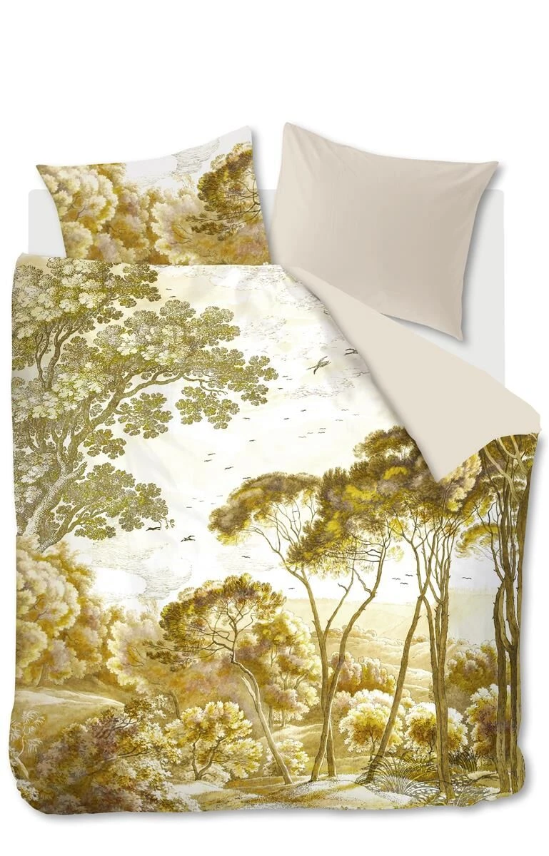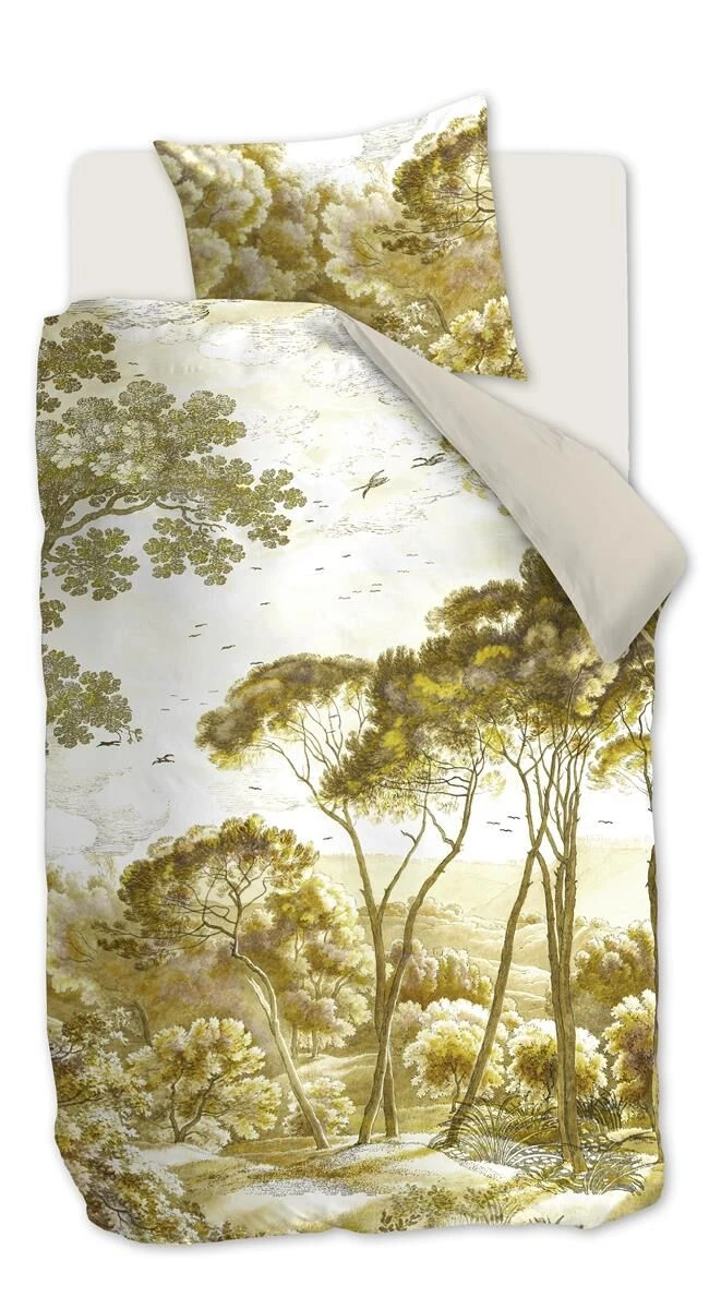 Der Bettbezug Italia zeigt eine wunderschöne Landschaft mit Bäumen, die im Licht eines Sonnenuntergangs leuchten. Die gelben und braunen Bäume heben sich vor einem weißen Hintergrund ab, die Rückseite des Bezugs ist einfarbig hellrosa. Beddinghouse hat sich zum Ziel gesetzt, schöne Kollektionen zu entwerfen, die Mensch und Umwelt in den Mittelpunkt stellen. Aus diesem Grund ist Beddinghouse Mitglied der Better Cotton Initiative, einer Organisation, die sich der Verbesserung des Baumwollanbaus weltweit widmet. Die Bettwäsche ist aus Mako-Satin, reine Baumwolle 220 TC, gefertigt. Der Bettbezug hat einen edlen Glanz und fühlt sich durch die Satinbindung glatt an. Bei einer Satinbindung werden mehr Fäden verwendet – das Gewebe wird dichter. Mako-Satin besteht aus hochwertiger reiner Baumwolle, ist atmungsaktiv und feuchtigkeitsabsorbierend. Der Bettbezug ist mit einem Reißverschluss ausgestattet.