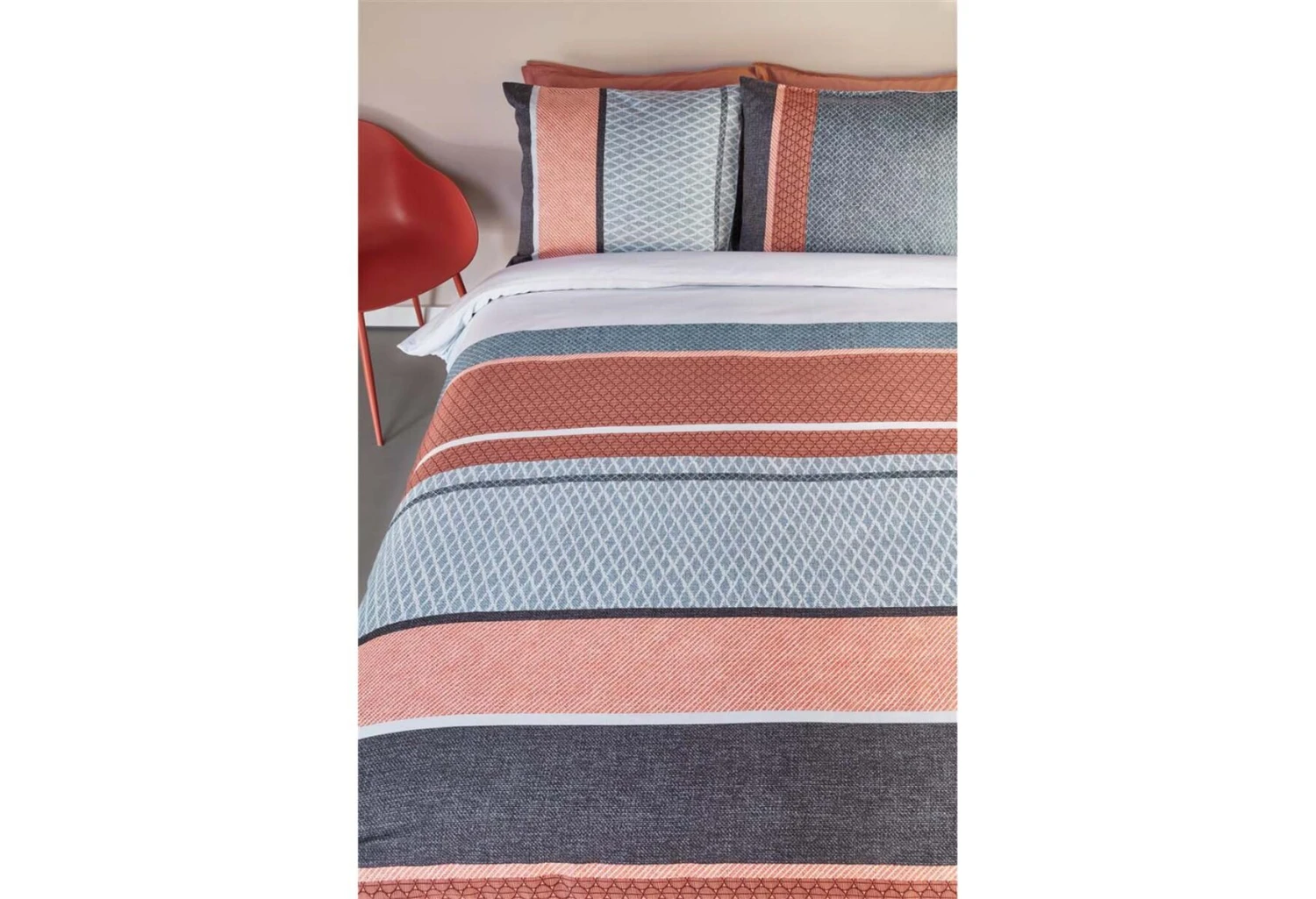 Modern, warm und stimmungsvoll, so lässt sich die Bettwäsche Lian beschreiben. Sie trägt ein Muster aus unterschiedlichen Streifen mit verschiedenen grafischen Strukturen. Die Farben sorgen für ein warmes Aussehen und kommen durch den Glanz von Satin toll zur Geltung. Durch das Satingewebe fühlt sich die Bettwäsche zudem wunderbar weich an. Beddinghouse möchte ansprechende Kollektionen im Einklang mit Mensch und Umwelt entwerfen. Daher ist Beddinghouse Mitglied des Programms Better Cotton Initiative, mit dem das Ziel verfolgt wird, die Produktion von Baumwolle weltweit zu verbessern. Die Bettwäsche ist aus Mako-Satin, reine Baumwolle 220 TC, gefertigt. Der Bettbezug hat einen edlen Glanz und fühlt sich durch die Satinbindung glatt an. Bei einer Satinbindung werden mehr Fäden verwendet – das Gewebe wird dichter. Mako-Satin besteht aus hochwertiger reiner Baumwolle, ist atmungsaktiv und feuchtigkeitsabsorbierend. Der Bettbezug ist mit einem Reißverschluss ausgestattet.