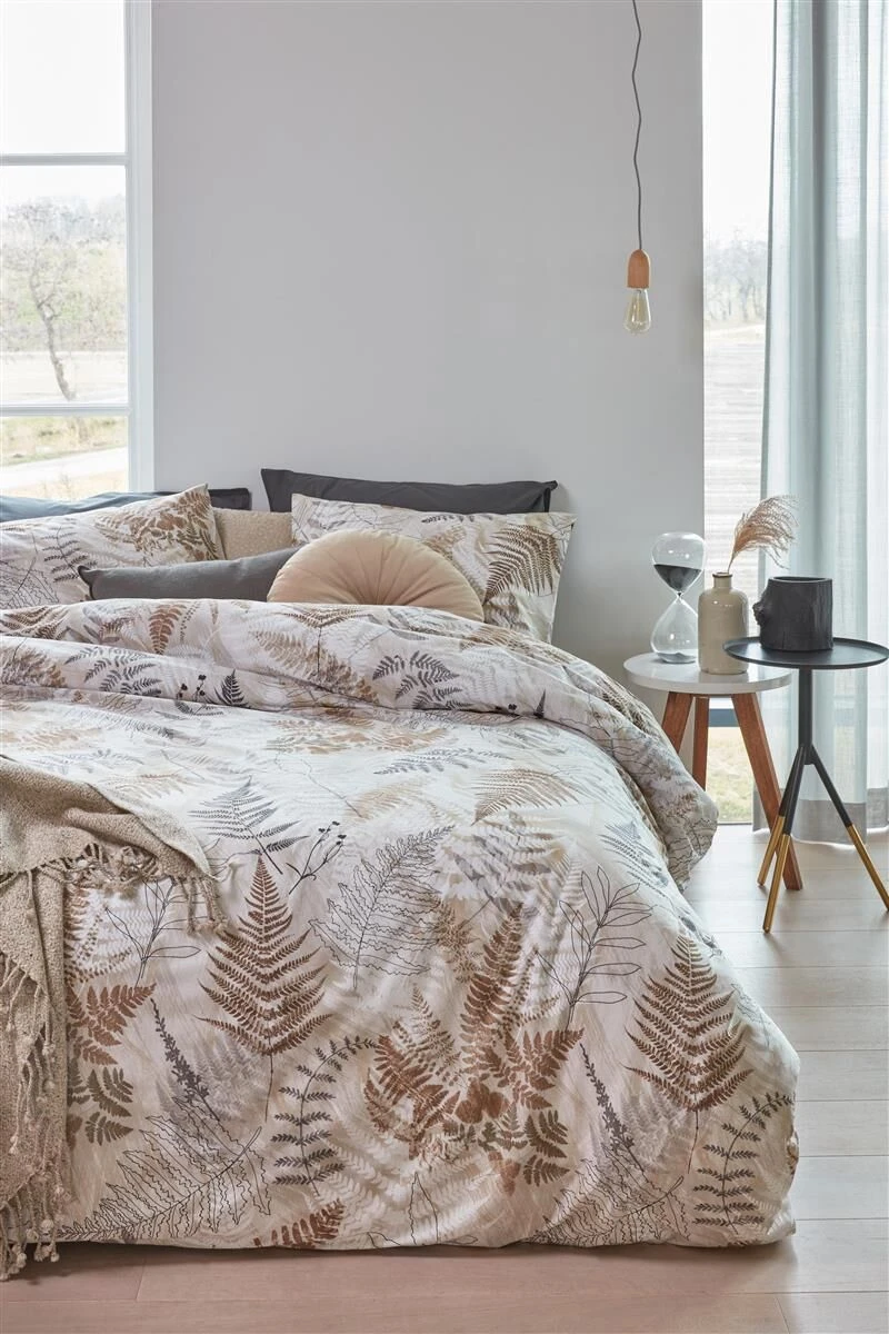 Die Bettwäsche Tatum ist ein Beispiel für eine solche nachhaltige Bettwäsche. Sie ist aus Bambus und Baumwolle gefertigt. Die Bettwäsche hat ein botanisches Muster aus verschiedenen Blättern, unter anderem von Farnen, die durchscheinend übereinandergelegt sind. Die gemäldeähnliche Struktur im Hintergrund rundet das Bild ab. Beddinghouse möchte ansprechende Kollektionen im Einklang mit Mensch und Umwelt entwerfen. Daher ist Beddinghouse Mitglied des Programms Better Cotton Initiative, mit dem das Ziel verfolgt wird, die Produktion von Baumwolle weltweit zu verbessern.