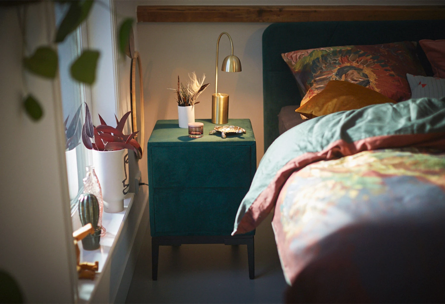 Gefällt Ihnen eine einfache Basis mit expressiven Farben, kombiniert mit funky Aspekten, wie zum Beispiel bedruckten Stoffen, persönlichen Fundstücken und weichen Materialien? Dann passt der Schlafzimmerstil Eclectric Retro perfekt zu Ihnen.