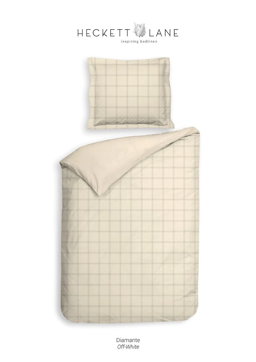 Die Heckett & Lane Diamante Bettwäsche Off-White hat ein klassisches Design mit Karomuster. Sie besteht zu 100 % aus hochwertigem Baumwollsatin. Das Satin-Gewebe verleiht dem Bettbezug einen leichten Glanz und eine glatte, besonders weiche Oberfläche. Sie fühlt sich besonders sanft auf der Haut an und bringt das Gefühl eines Hotelbettes zu Ihnen ins Schlafzimmer. Die Bettwäsche ist in verschiedenen Farben erhältlich. Entdecken Sie alle Farben >