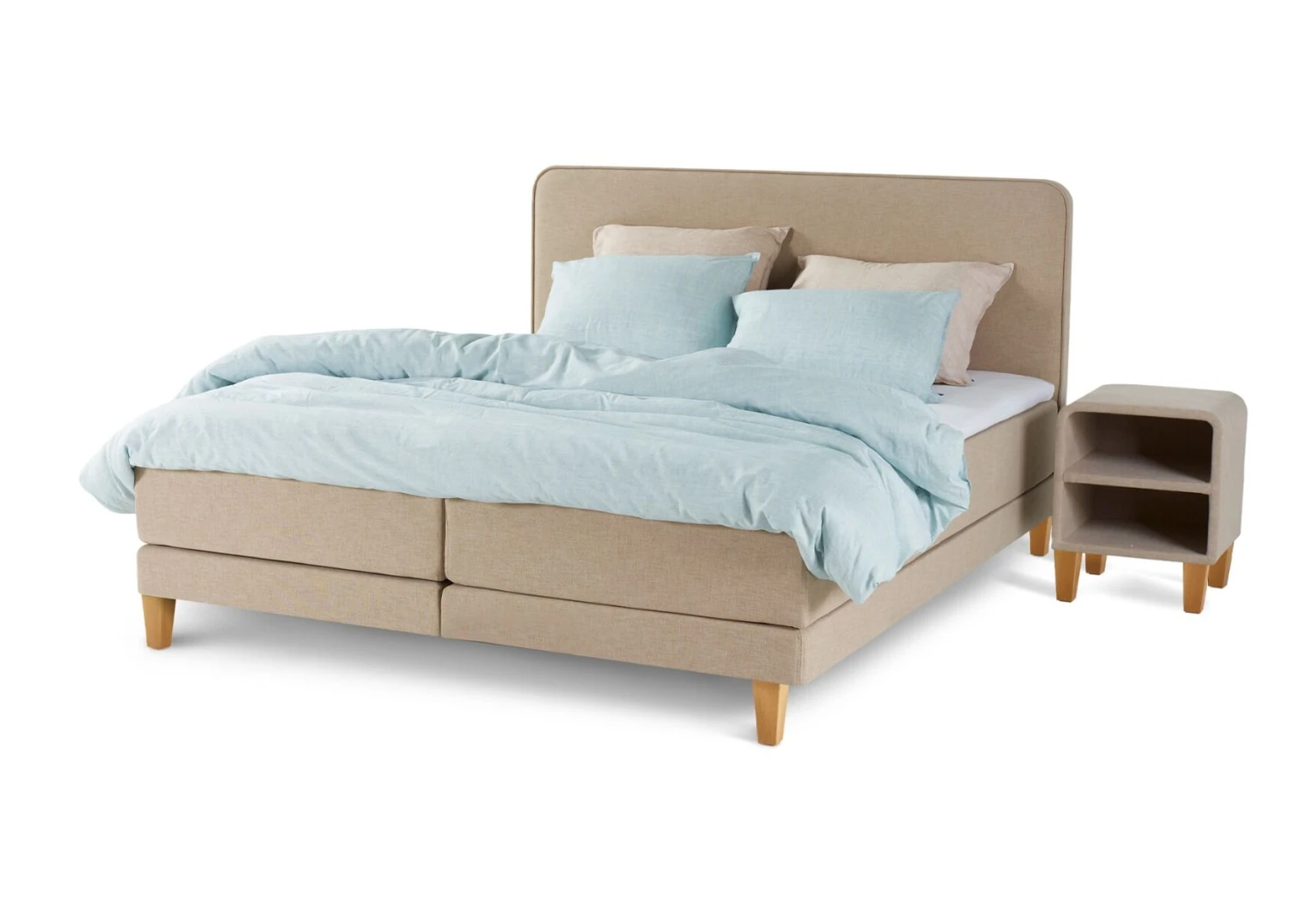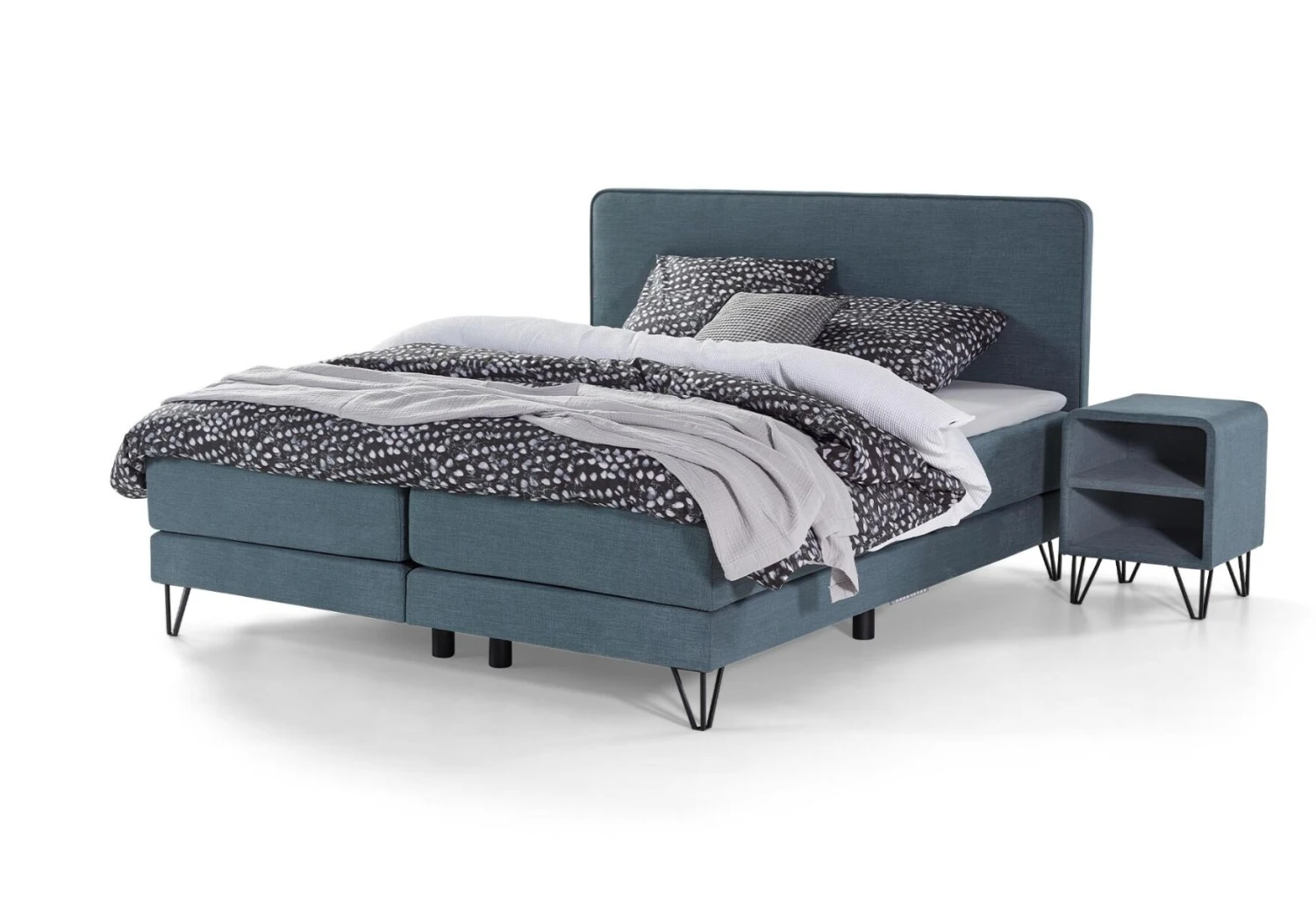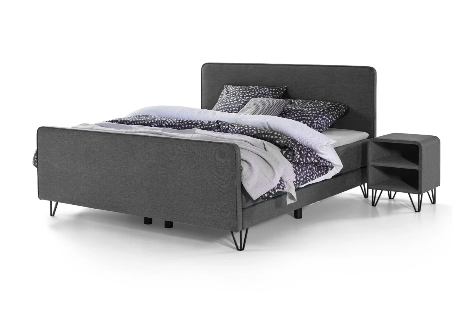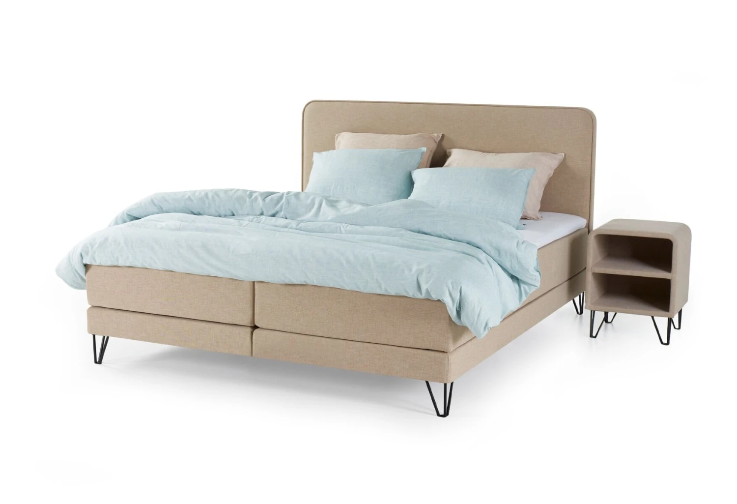 Der Nachttisch Desert passt sehr gut zum Boxspringbett Home 103. Die Polsterung, die abgerundeten Ecken und die Stahlbeine des Nachttischs finden sich auch im Design des Boxspringbettes wieder. Das moderne Aussehen des Nachttisches lässt sich übrigens auch leicht mit anderen modernen Boxspringsystemen kombinieren.