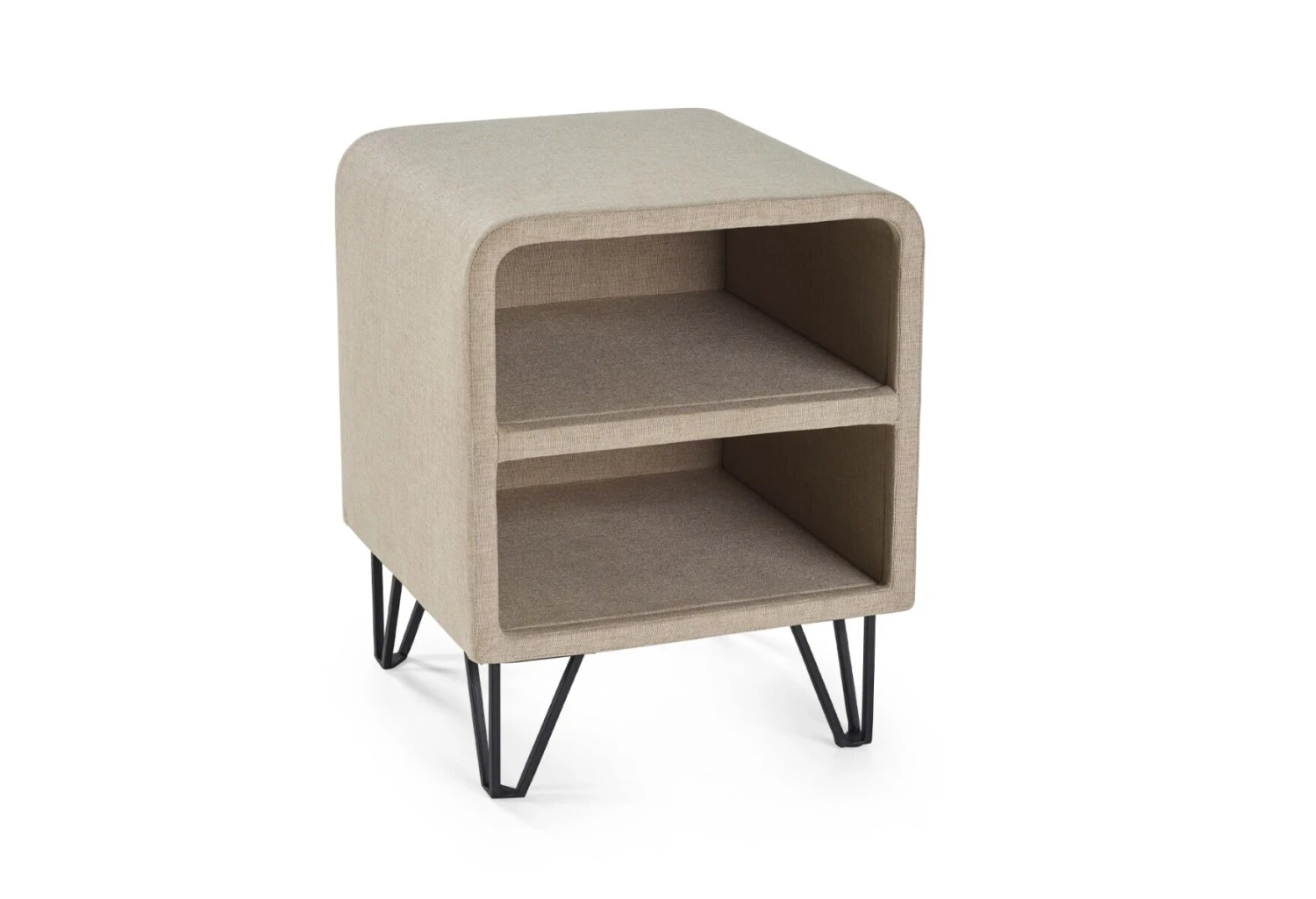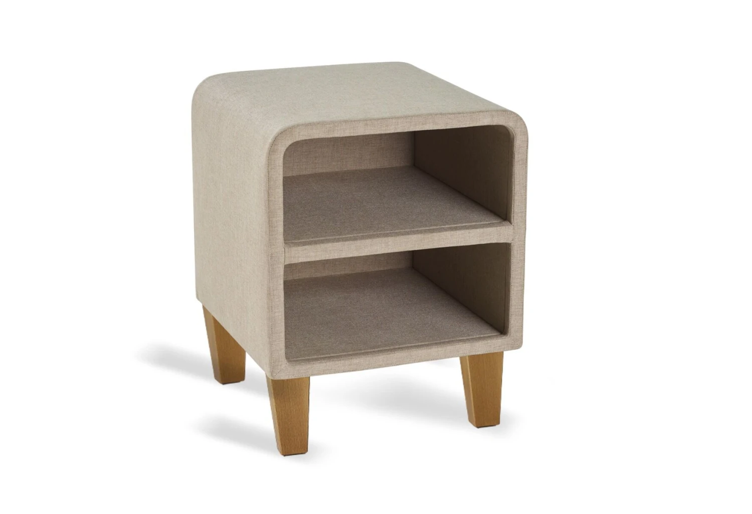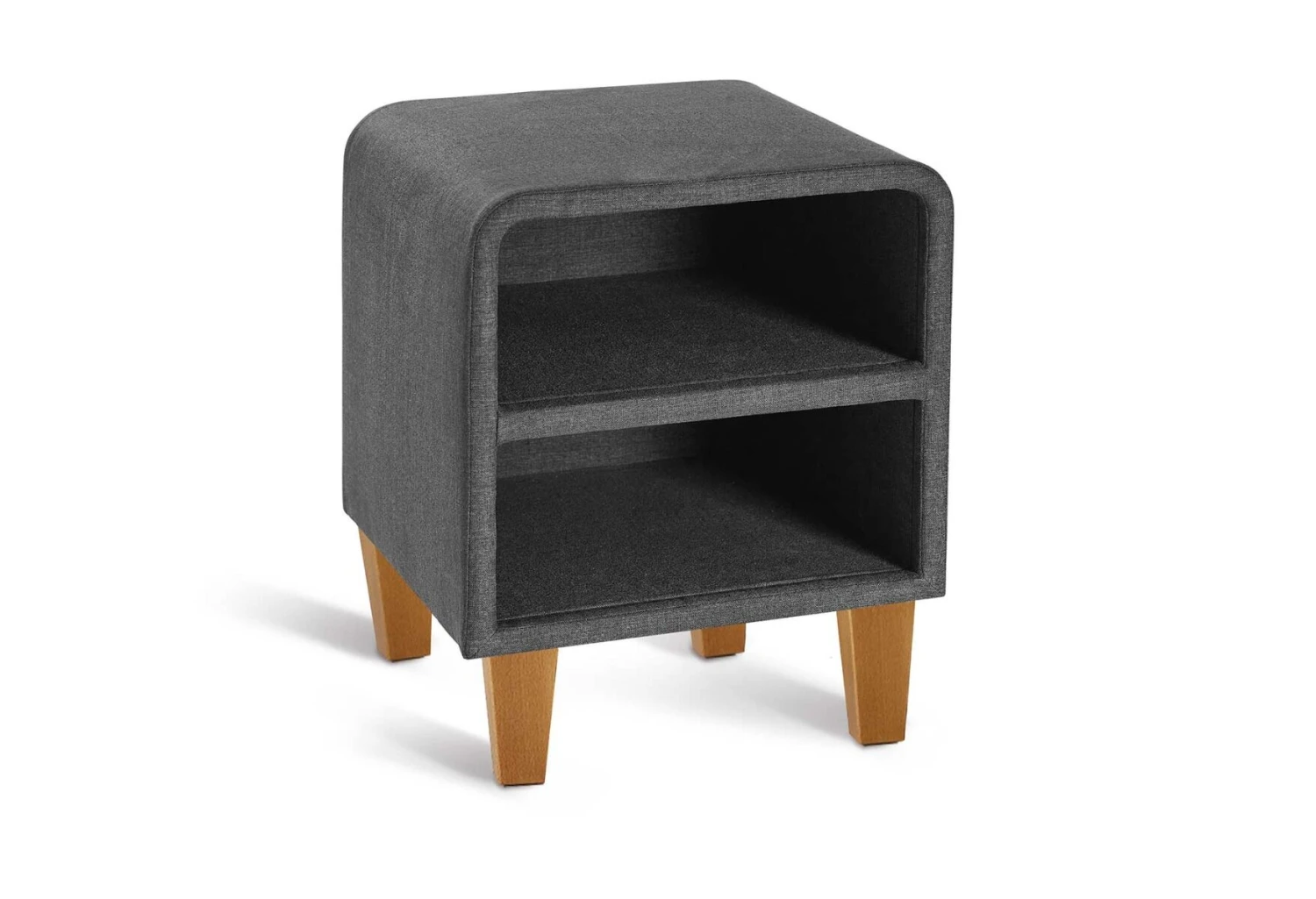 Der Nachttisch hat zwei offene Ablagefächer mit viel Stauraum für all die Dinge, die Sie gerne griffbereit haben.
