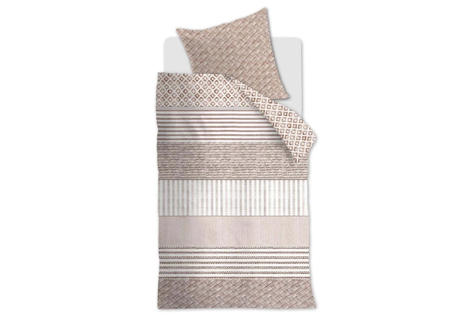Das Dessin Desert Secrets ist aus verschiedenen Streifen mit unterschiedlichen Strukturen und grafischen Gewebemustern aufgebaut. In einem der Streifen ist in das Muster auch ganz subtil das Logo „RM“ eingearbeitet. Die Farbkombination sorgt dafür, dass die Bettwäsche eine angenehme, erfrischende, aber doch auch warme und gemütliche Atmosphäre erzeugt. Die Bettwäsche ist aus hochwertiger reiner Baumwolle, 144 TC, gefertigt. Baumwolle ist ein atmungsaktives und feuchtigkeitsaufnehmendes Naturprodukt. Die Bettwäsche fühlt sich durch die spezielle Verarbeitung komfortabel und angenehm weich an. Der Bettbezug ist mit einem Reißverschluss ausgestattet.