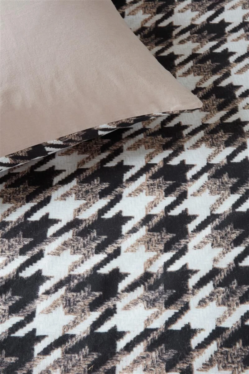 Der Name dieser Bettwäsche macht dem Dessin alle Ehre. Das charakteristische Karo, auch Hahnentrittmuster genannt, kommt auf dem wunderbar weichen Samt toll zur Geltung. Die Bettwäsche Pied de Poule von Rivièra Maison hat mit ihren dunklen Farben ein cooles, aber gleichzeitig auch warmes Aussehen. Die Rückseite des Bettbezugs ist einfarbig. Die Bettwäsche besteht aus sehr weichem Biber, reine Baumwolle. Für diese Bettwäsche wurden dickfädige, weich gebürstete Garne verwendet, so dass sich der Stoff sehr weich, griffig und warm anfühlt. Bettwäsche aus Biber eignet sich besonders gut für die Wintermonate. Biber ist ein atmungsaktives Naturprodukt. Der Bettbezug ist mit einem Reißverschluss ausgestattet.