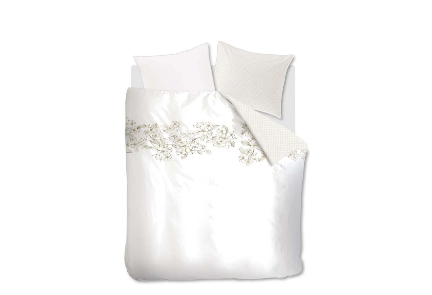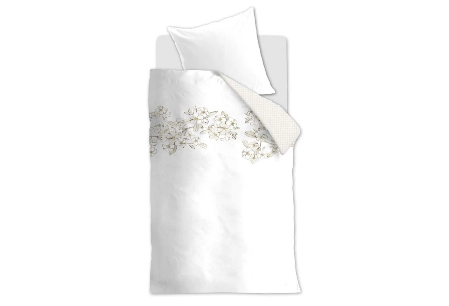 Wunderschön gezeichnete Blumen, nämlich Frangipani in Weiß und Beige, zieren einen strahlend weißen Hintergrund auf der Bettwäsche Plumeria. Die Bettwäsche hat eine ruhige, romantische Optik. Die Rückseite des Bettbezugs präsentiert sich in einem raffinierten grafischen Muster. Ein tolles Detail an den Kissenbezügen ist die sandfarbene Kordeleinfassung. Die Bettwäsche ist aus hochwertiger reiner Baumwolle, 144 TC, gefertigt. Baumwolle ist ein atmungsaktives und feuchtigkeitsaufnehmendes Naturprodukt. Die Bettwäsche fühlt sich durch die spezielle Verarbeitung komfortabel und angenehm weich an. Der Bettbezug ist mit einem Reißverschluss ausgestattet.