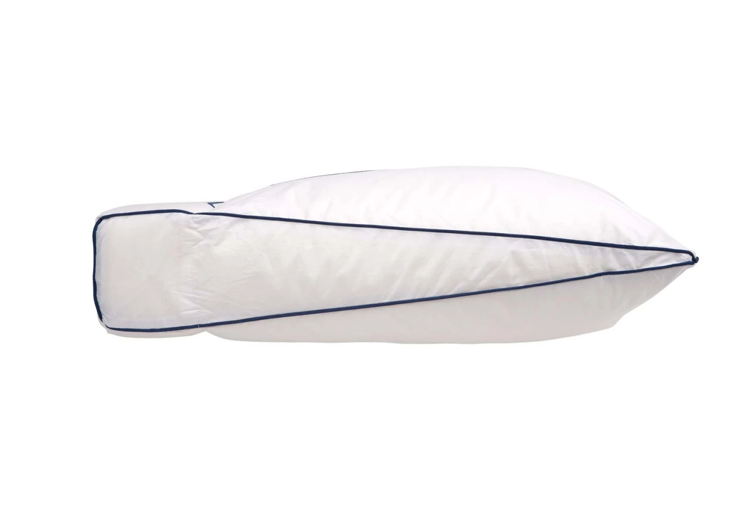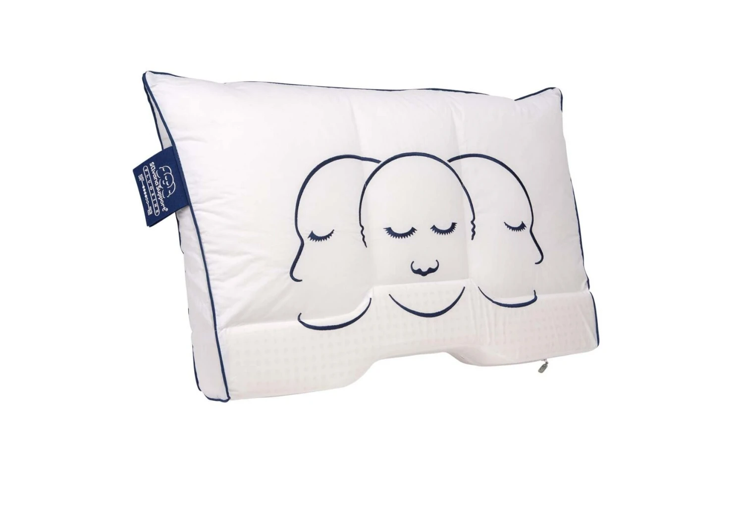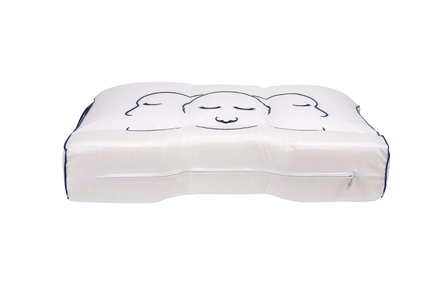 Der Bezug des Kissens ist aus 100% hochwertiger Baumwolle und ist gegen Hausstaubmilben behandelt. Rundum ist der Bezug mit einer blauen, gestickten Biese abgesetzt. Das Kissen verfügt über eine vorgeformte Schulterkontur sowie über eine Nackenstütze. Die Füllung des Kissens besteht aus Talalay-Latex, der für gute Feuchtigkeitsregulierung und Atmungsaktivität sorgt und geschmeidigen Komfort bietet. Durch den Reißverschluss lässt sich die Füllung leicht herausnehmen. Das Kissen ist bei 60 Grad waschbar. Die Nackenstütze ist 7 cm hoch und die Maße des Kissens insgesamt sind 40×80 cm.